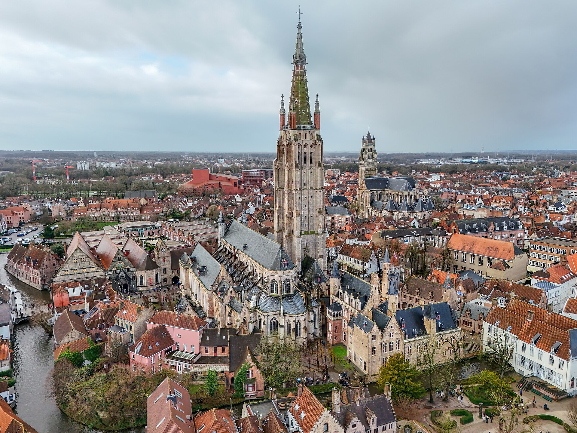 The tower of the Church of Our Lady reaches 115.5 metres into the Bruges skyline, making it the tallest structure in the city and one of the tallest brick towers in the world. Construction began in the 13th century and continued for over two hundred years, and the result is a building that wears its long construction history openly — Romanesque foundations, Gothic nave, and a tower that gets progressively more ambitious the higher it goes. But the reason most people visit has nothing to do with the architecture. In the southern aisle, behind protective glass, stands Michelangelo's Madonna and Child — a 128-centimetre white Carrara marble sculpture created around 1504. It was the only Michelangelo sculpture to leave Italy during his lifetime. A wealthy Bruges cloth merchant named Jan de Mouscron acquired the statue, possibly through an intermediary, and by 1514 it had been donated to this church. The Madonna gazes downward and away from the Christ child, who appears about to step off her lap — a radically different composition from traditional depictions, and unmistakably the work of a sculptor who was simultaneously painting the Sistine Chapel ceiling. The sculpture has been stolen twice. French Revolutionary troops seized it around 1794 and took it to Paris, where it remained until Napoleon's defeat. Then in September 1944, retreating Nazi soldiers packed it into a mattress-lined truck and removed it to Germany. It was recovered by the Monuments Men from a salt mine in Altaussee, Austria, and returned to Bruges. The film The Monuments Men dramatised this recovery, though Hollywood took its usual liberties. In the choir behind the high altar lie the magnificent tombs of Charles the Bold, last Valois Duke of Burgundy, and his daughter Mary of Burgundy — two of the finest examples of Late Gothic funerary art in Europe.