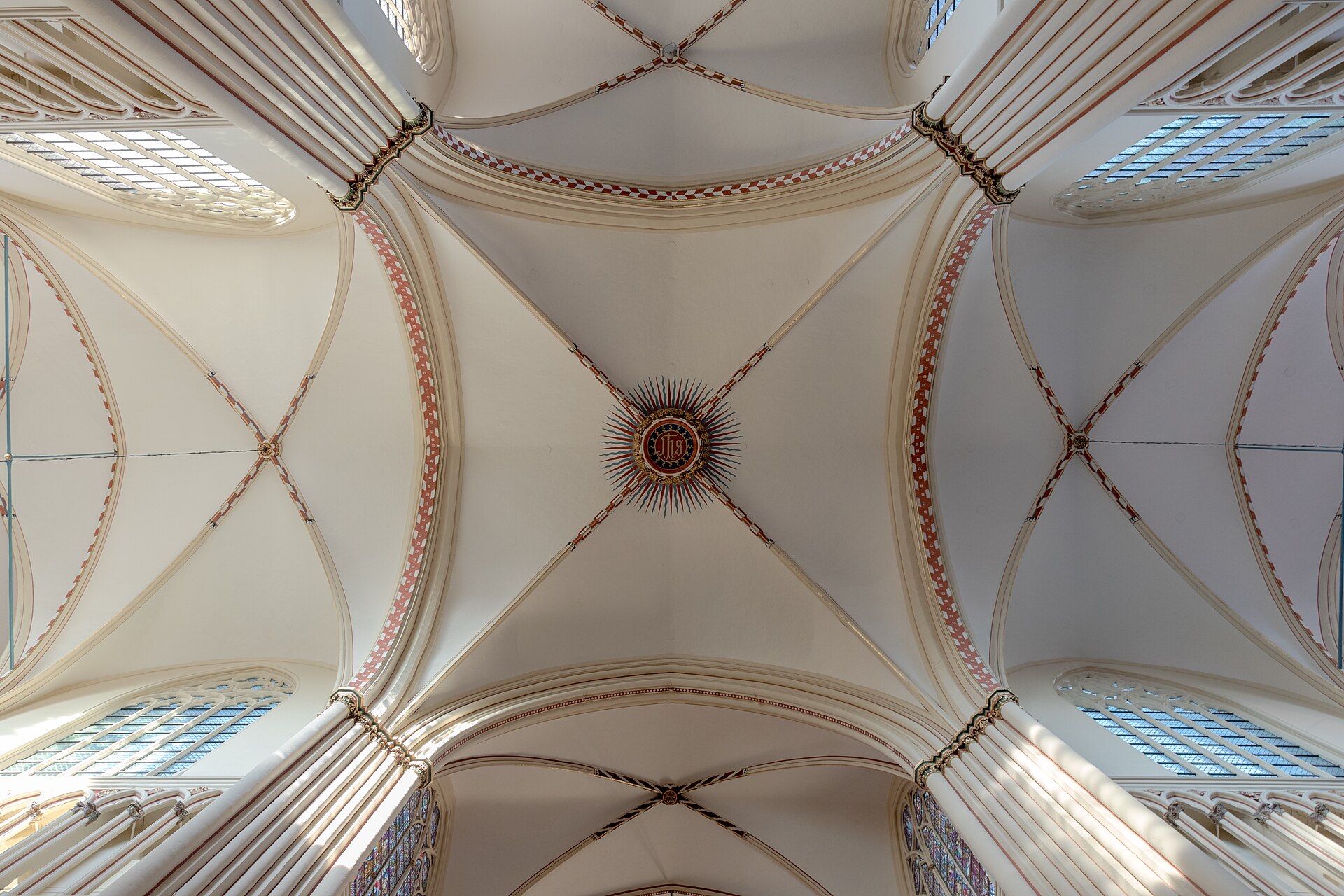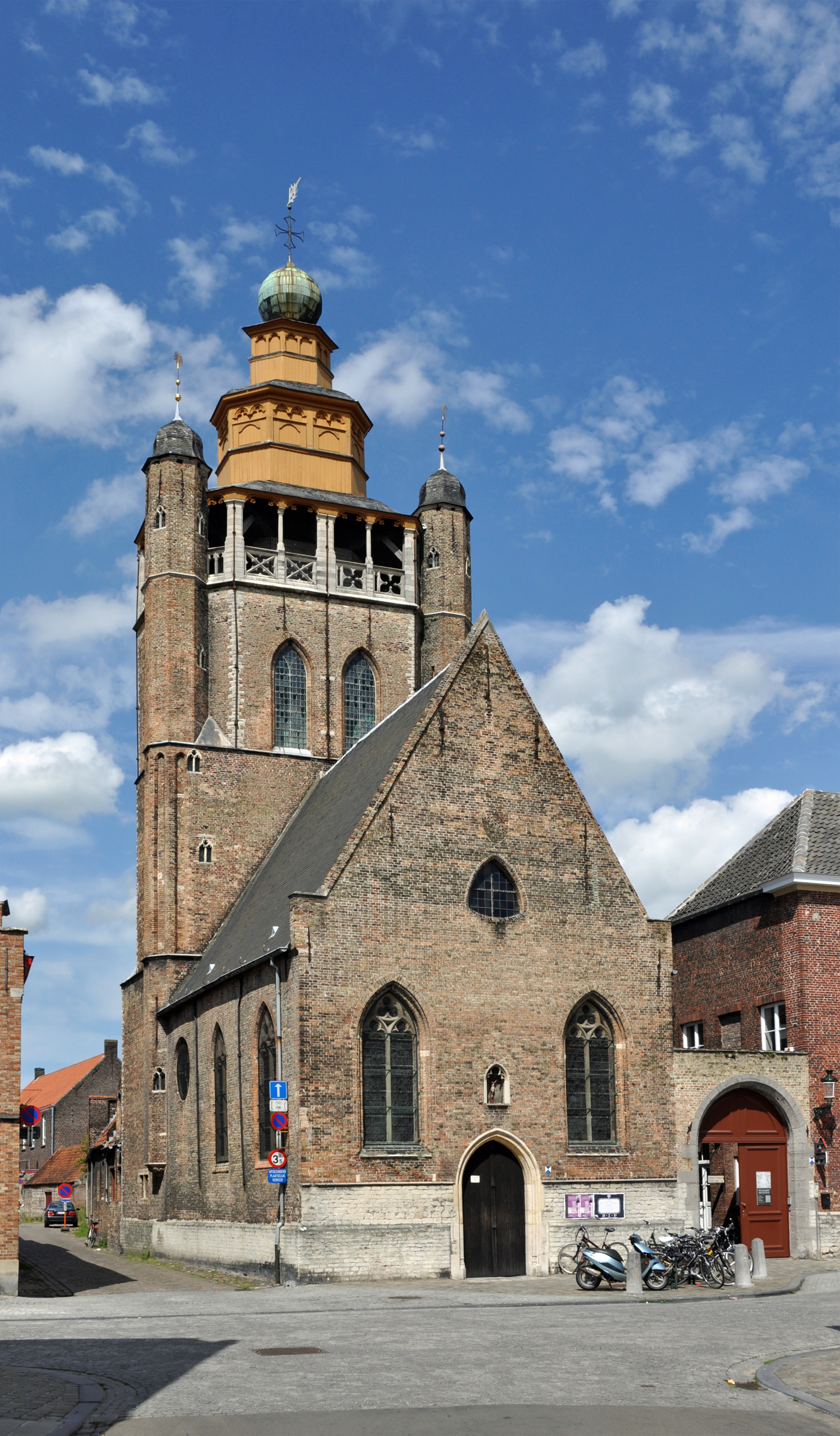 This is the oldest church in Bruges, with traces dating back to the 10th century, and for most of its life it was not a cathedral at all. Sint-Salvator was a common parish church for eight hundred years, overshadowed by the grander Sint-Donaas Cathedral on the Burg square. Then, after Belgian independence in 1830, a new bishop was installed in Bruges and needed a seat. The old cathedral had been demolished during the French Revolutionary period, so Sint-Salvator was promoted — a parish church elevated to cathedral status essentially because the competition had been bulldozed. The fortress-like neo-Romanesque west tower rises 99 metres and gives the building a military rather than spiritual appearance. That militant look is partly the work of English architect Robert Chantrell, who was brought in to restore the building after the roof collapsed in a fire in 1839. Chantrell, famous for his neo-Gothic restorations of English churches, added the crown of the tower in a style that looks more Yorkshire than Flanders. The interior stretches 101 metres long and houses a remarkable collection of art, much of it rescued from the demolished Sint-Donaas Cathedral. The wall tapestries near the entrance were manufactured in Brussels by Jasper van der Borcht in 1731, and the church contains paintings by major Flemish artists. The cathedral treasury holds medieval manuscripts, church silver, and the brass tomb of Bishop Robert de Torote from the 13th century. What makes Sint-Salvator interesting is not that it is the most beautiful church in Bruges — the Church of Our Lady arguably holds that title — but that it is the most resilient. It has survived fires, demolition, neglect, and the awkward promotion from parish church to seat of a bishop. Every scar has been patched, and every patch tells a story.