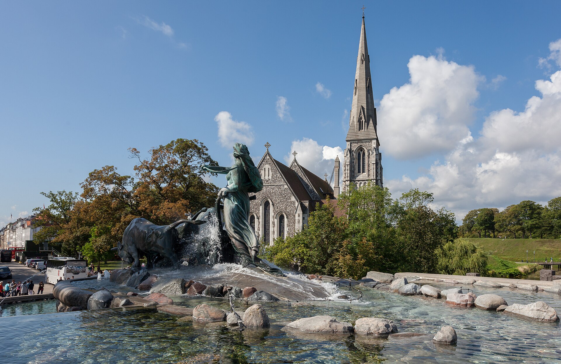 The largest fountain in Copenhagen depicts the Norse goddess Gefjon whipping four enormous oxen forward as they drag a plough through the earth — and the mythology behind it is wonderfully dramatic. According to legend, the Swedish King Gylfi promised Gefjon as much land as she could plough in a single day and night. Gefjon, not one to be outmanoeuvred by a mortal king, turned her four sons into oxen and ploughed so furiously that she ripped an entire chunk of Sweden loose and dragged it into the sea. That chunk became Zealand, the island on which Copenhagen sits. The hole left behind filled with water and became Lake Mälaren in Sweden. The fountain was donated by the Carlsberg Foundation in 1908 to celebrate the brewery's 50th anniversary — because nothing says "cheers to beer" like a massive Art Nouveau sculpture depicting Norse mythology. Danish artist Anders Bundgaard sculpted the naturalistic figures between 1897 and 1899, and the granite basins and decorations were completed in 1908. The fountain was first activated on July 14, 1908, and the sheer scale of the bronze sculpture group — Gefjon straining at the reins, the four massive oxen lunging forward, water cascading around them — is genuinely impressive. It was originally planned for City Hall Square, but someone sensibly decided that a monumental water feature depicting the mythological theft of Swedish real estate should perhaps face the sea, and it ended up near Kastellet instead. The fountain underwent extensive restoration starting in 1999 and was re-inaugurated in September 2004 after years of being out of commission. Sitting in Churchillparken between Kastellet and the Little Mermaid, the fountain is often overshadowed by its more famous neighbour. That is a shame, because pound for pound, the Gefion Fountain is the more impressive sculpture — bigger, more dynamic, and backed by a far better story.