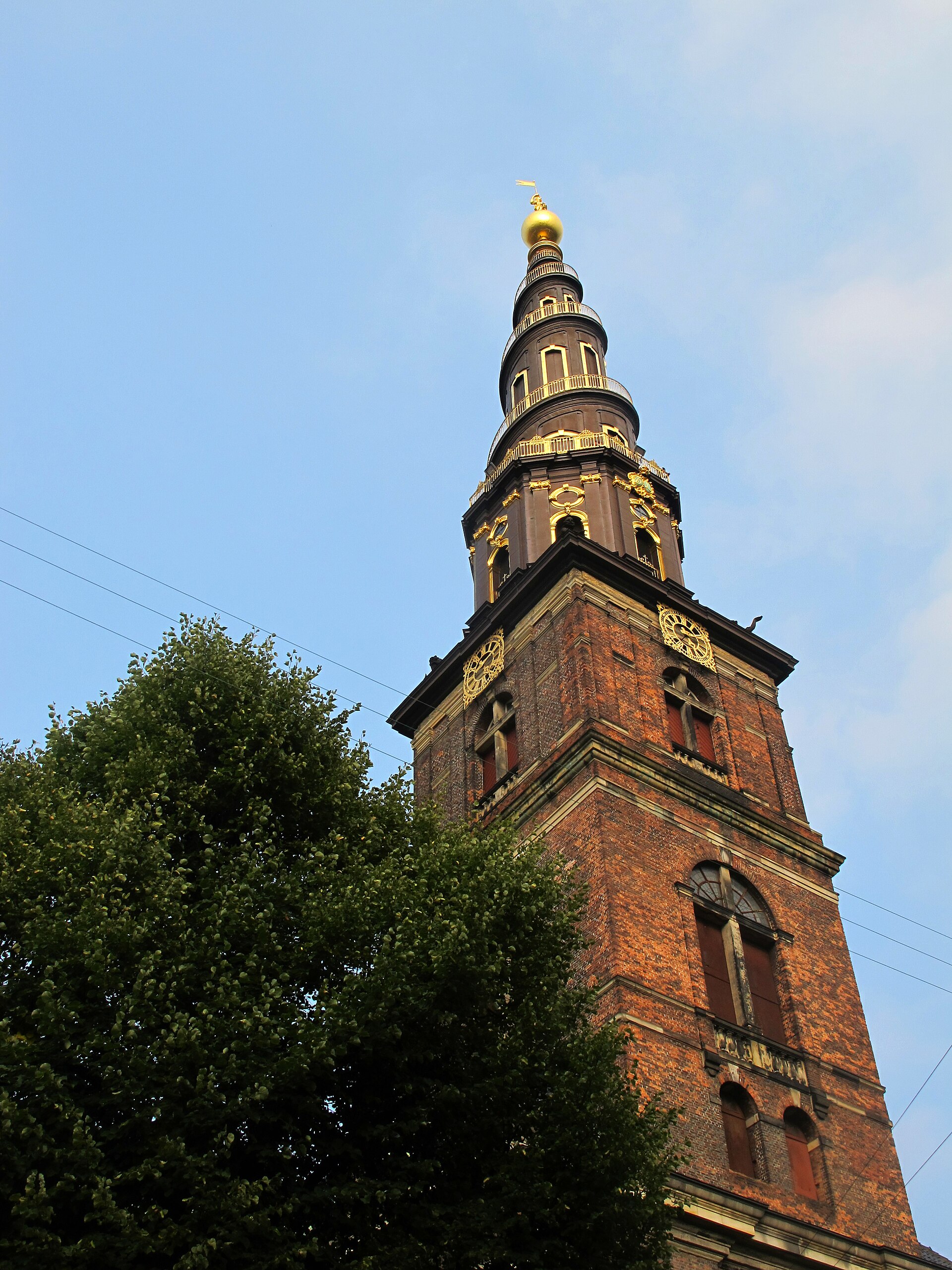 The external spiral staircase winding around the spire of this Baroque church is one of the most vertiginous experiences in Northern Europe. Four hundred steps take you from ground level to the gilded globe at the top, with the final 150 steps clinging to the outside of the spire as it narrows to a point 90 metres above the Christianshavn canal. The staircase winds counterclockwise four times around the spire, and as you climb higher, the steps get narrower and the railing gets lower. It is not for the faint of heart, and roughly 60,000 visitors attempt it every year. The church itself was completed in 1696 and is one of the finest Baroque churches in Denmark, with an interior featuring a massive three-storey altar carved in marble and gilded wood by Nicodemus Tessin the Younger, the same architect who designed the Royal Palace in Stockholm. The elephant-supported organ from 1700 is one of the largest Baroque organs in Scandinavia. But it is the spire that draws the crowds, and it was added much later — designed by architect Lauritz de Thurah and completed in 1752, over fifty years after the church opened. De Thurah took his inspiration from the spiral lantern of Borromini's Sant'Ivo alla Sapienza in Rome, which winds in the same counterclockwise direction. Legend says that de Thurah climbed his spire after completion, realised it spiralled the wrong way compared to other towers, and threw himself from the top in despair. This is entirely false — he died peacefully in 1759 — but it is the kind of story Copenhageners love to tell tourists on the way up. From the top, you get an unmatched panorama: the Copenhagen skyline to the west, Christiania's green rooftops to the south, and the Øresund strait stretching to Sweden on a clear day. The gilded globe and four-metre Christ figure crowning the spire can be seen from almost anywhere in the city.