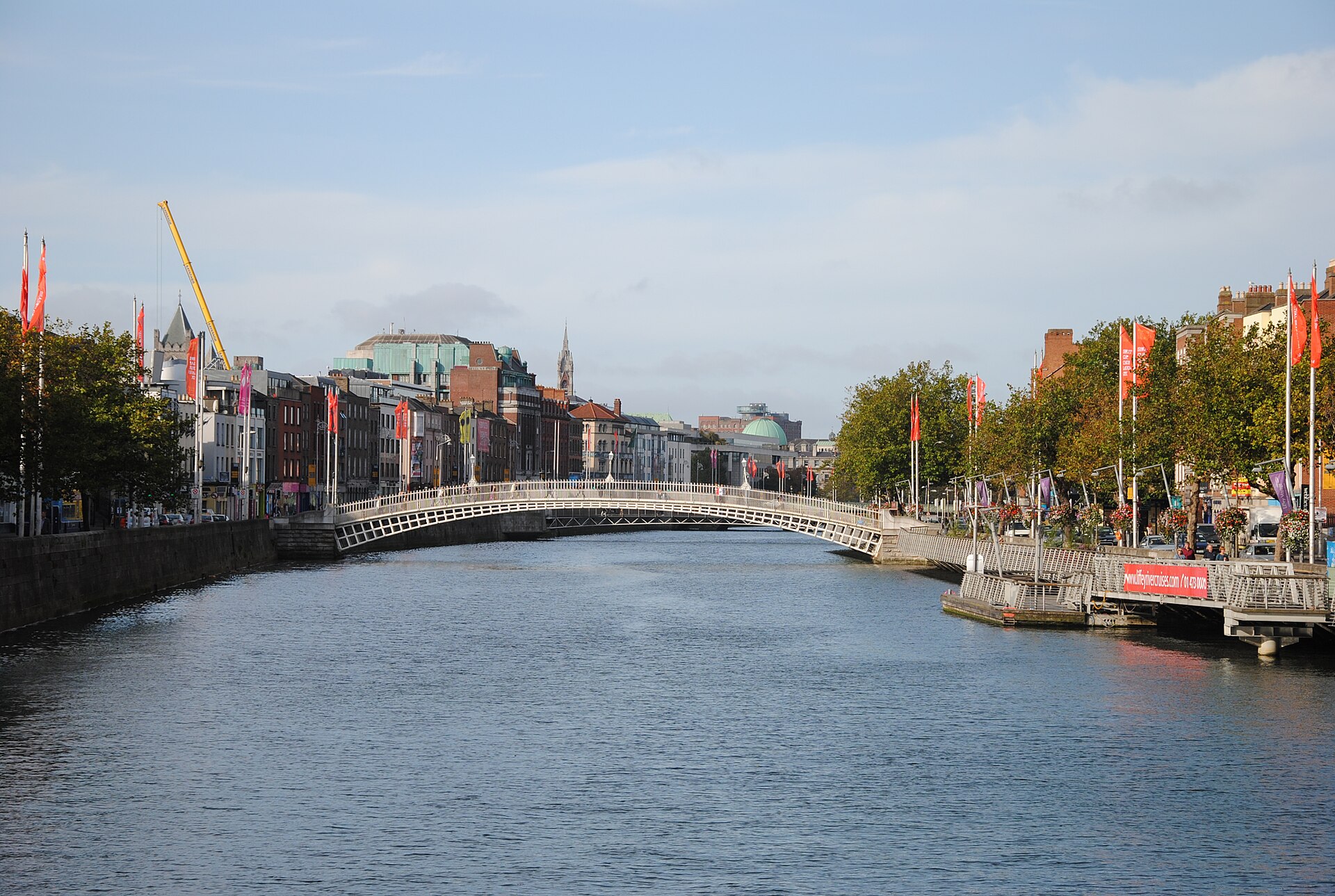 O'Connell Bridge holds a peculiar distinction: it's the only traffic bridge in Europe that is almost exactly as wide as it is long. At approximately 45 metres in both dimensions, it's essentially a square of road suspended over water, which gives it a proportional strangeness that most people don't consciously register but definitely feel. It's a bridge that doesn't quite look like a bridge. The current structure dates to 1880, when it replaced an earlier narrow humpback bridge called Carlisle Bridge, built in 1795. The city needed a wider crossing to handle the increasing traffic between Dublin's north and south sides, and the architects responded by making it so wide you could practically land a plane on it. It was renamed O'Connell Bridge in 1882 after Daniel O'Connell, whose elaborate statue stands at the bridge's northern end, bullet holes from the 1916 Rising still visible on the base. The bridge connects O'Connell Street on the north side to Westmoreland Street and D'Olier Street on the south, making it one of the most heavily trafficked intersections in Ireland. Stand in the middle and you can see upriver to the Ha'Penny Bridge and downriver to the Custom House — two of Dublin's finest architectural landmarks framing the Liffey in either direction. The Liffey underneath is tidal, which means the water level rises and falls with the sea. At low tide, the river can look disappointingly shallow; at high tide, it fills out nicely. Dubliners have a complicated relationship with their river — they love it, complain about it, and make endless jokes about its colour. The bridge is where most of those conversations happen.